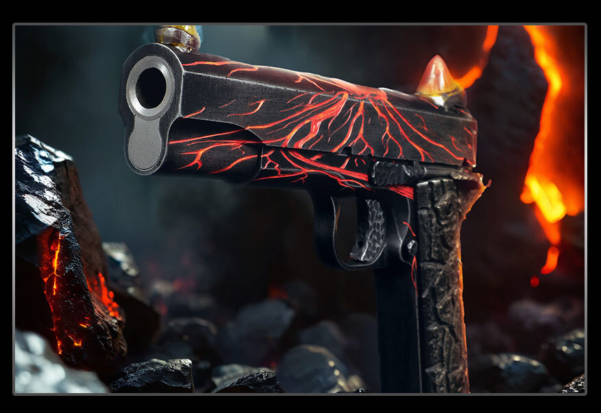 The Lava Gun is not themed — it is transformed. It is the collision of art, geology, mythology, and gunsmithing in a single catastrophic moment.